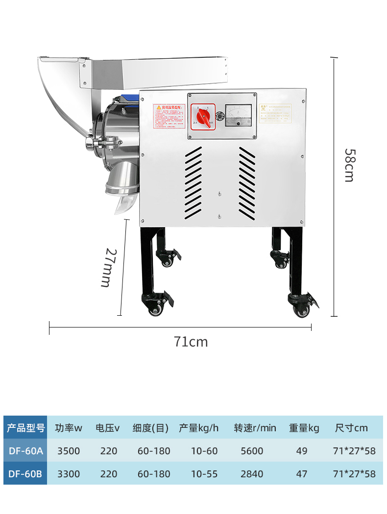 大德磨粉机DF-85高效五谷杂粮粉碎机商用不锈钢粮食打粉机