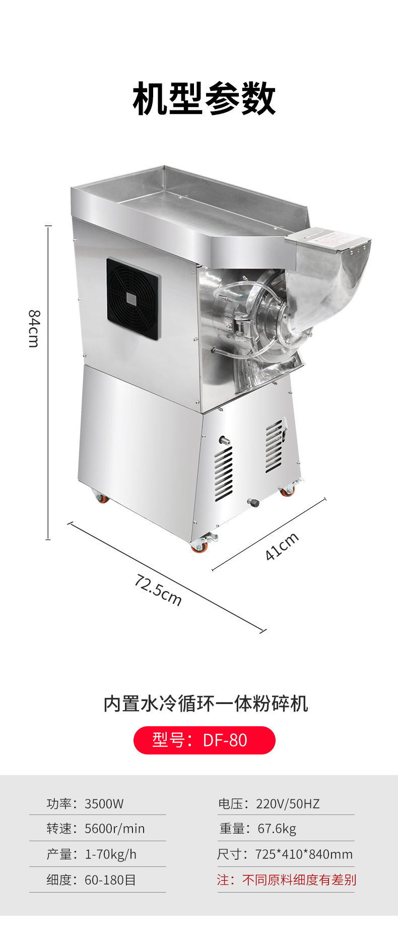 大德 DF-80内置水冷低温中药材粉碎机三七天麻商用连续投料打粉机